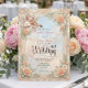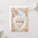 Traslade a sus invitados a una era romántica con este diseño etéreo que presenta un querubín vintage y pasteles suaves. Perfecto para una elegante celebración de primavera. Este diseño presenta una composición sofisticada que recuerda al arte del siglo XVIII. Un marco impreso ornamentado que imita la apariencia de mármol beige y molduras arquitectónicas en relieve bordean el diseño. Dentro del marco, un fondo de cielo azul polvoriento establece un tono celestial, superpuesto con una ilustración vintage de un ángel querubín tocando el violín. La escena está acentuada por rosas albaricoque suaves, margaritas blancas y follaje verde salvia. El texto se presenta en una escritura formal y elegante. Esta es una imagen impresa plana con un efecto de textura de piedra falsa, no material realzado real o relieve 3D.