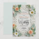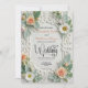 Traslade a sus invitados a un mundo de elegancia vintage con este impresionante diseño que captura la belleza eterna de una mansión victoriana. El delicado equilibrio entre flores románticas y detalles arquitectónicos establece un tono sofisticado para su celebración de alta gama. Es la elección perfecta para la novia que aprecia el encanto clásico europeo y que busca una calidad de reliquia familiar. Este diseño presenta un borde de filigrana en relieve digital 3D con una textura de estuco tallado falso en marfil y crema. El diseño está acentuado por rosas melocotón realistas, margaritas blancas y hojas de dusty miller en verde salvia. La tipografía utiliza una mezcla de escritura decorativa a mano en negro carbón y una serifa clásica limpia, todo impreso en una superficie plana con una textura visual de alta fidelidad.