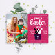 Esta invitación a la fotografía de la familia "Hop on Over", un fiesta de Pascua, presenta un diseño minimalista con dos adorables conejillos blancos y negros mirando desde un bolsillo, colocados en un elegante fondo magenta con juguetones tipo confeti. Personaliza el texto y reemplaza fácilmente la foto con la tuya para que sea realmente especial. Es la manera perfecta de invitar a amigos y familiares a reunirse para una emocionante caza de huevos y un delicioso brunch de Pascua. ¡Pida tu invitación única hoy y prepárate para celebrar con estilo con los seres queridos!