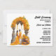 Una hermosa acuarela con un novio y una novia india vestidos con atuendos bodas tradicionales parados debajo de un arco adornado con hermosas flores naranjas amarillas. Al pie del arco hay potes llenos de cúrcuma listos para que la familia y amigos los usen para traer bendiciones, protección y purificación a la pareja de novias. Este diseño elegante, moderno y de moda tiene plantillas de texto en negro personalizado para la redacción personalizado, todo ello con un fondo blanco. Celebra esta ceremonia pre boda con amigos y familia. Esta invitación es ideal para cualquier sangeet; hindi; hena; mehndi o mhindi.
