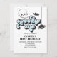 Espeluznante Una invitación de primer cumpleaños de Halloween con fantasma, murciélago y araña.