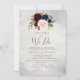 Este elegante y clásico rosa de flores de guisantes antes de la invitación es perfecto para una rústica celebración de ensayo boda. El diseño está decorado con bonitas flores pintadas a mano, rosas, azules, navales y borgoñas con hojas verdes, cuidadosamente agrupadas en elegantes ramos para embellecer tus tarjetas de invitación al evento.