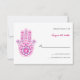 La información de su fiesta se imprime junto a las tarjetas de respuesta de hamsa coloridas.