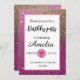 Esta impresionante invitación presenta un vibrante fondo purpurina rosa caliente adornado con glamorosos acentos purpurinas de oro, que le dan un toque de elegancia y brillo. Con su diseño femenino y elegante, es perfecto para cumpleaños y otros eventos de celebración. Personalice la invitación con sus propios detalles de fiesta para que sea verdaderamente única. Prepárate para impresionar a tus invitados con esta atractiva y glamorosa invitación que marca el tono para una memorable y deslumbrante celebración de cumpleaños.