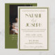 Invitación Fancy Old Money Olive Green QR Code Photo Wedding