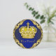 Hermoso azul real y oro con la corona dorada elegante invitación real a la ducha de bebé. Esta exquisita invitación a la ducha para bebés de príncipe azul real y oro se personaliza fácilmente para tu evento simplemente añadiendo tus detalles en el estilo de letra y color, la redacción y la disposición de tu elección.