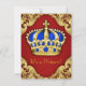 Hermoso rojo, azul real y dorado con una elegante invitación real a la ducha de bebé. Esta exquisita invitación a la ducha de bebé de príncipe azul real, rojo y dorado se personaliza fácilmente para tu evento simplemente añadiendo tus detalles en el estilo de letra y color, la redacción y la disposición de tu elección.