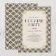 Convocatoria de cócteles inspirada en el Art Deco y en el New Nouveau, en blanco, negro y dorado plano, con un diseño elegante en ambos lados. Personalice este diseño cambiando los detalles del texto. Disponible en una variedad de invitaciones y accesorios para fiestas. Se ve bien en mate o lo hace lujoso eligiendo en el papel más brillante.