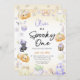 Celebra con estas divertidas y modernas invitaciones de primer cumpleaños "Spooky ONE" de Halloween. Esta moderna invitación de cumpleaños está compuesta por fantasmas acuáticos pintados a mano