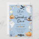 Invitación Fantasma de Halloween azul lindo primer cumpleaños