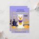 ¡Celebra Halloween con tu hijo y amigos, incluidos mascotas con esta divertida invitación de la fiesta de Halloween! Presenta un perro disfrazado de fantasma haciendo trucos o dulces con una canasta de calabaza cerca de una casa y calabazas. La parte trasera de esta invitación a la fiesta de cumpleaños de Halloween incluye la silueta de la casa, calabazas, murciélagos y estrellas. Los colores clave son naranja y violeta. ¡Es tan fácil personalizar esta invitación simple pero adorable a la fiesta de cumpleaños con tus propios detalles!