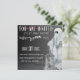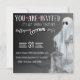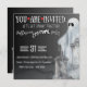 Un fantasma gris espeluznante, parado detrás de unas lápidas espeluznantes, aparece a la derecha de la tarjeta con efecto acuarela. El reverso de la tarjeta contiene tres lápidas que se elevan en medio de la invitación con un gradiente de gris y negro mutado. La información de la invitación de la parte es totalmente personalizable, a excepción de la secuencia de comandos en la parte superior de la invitación. Seamos espeluznantes juntos Fiesta de disfraces de Halloween