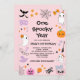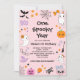 Invitación de primer cumpleaños de Chica de Fantasma Halloween de color Rosa One Spooky Year Cute.