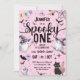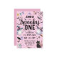 Haz de tu pequeño el primer cumpleaños una celebración conmovedora con nuestra "Spooky One" Halloween 1er cumpleaños Chica Fantasma Invitación rosa! Perfecto para una reunión divertida y festiva, esta encantadora invitación marca el tono para un hito inolvidable! 🎃 🦇