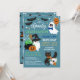 Invite a sus amigos a una celebración espeluznante en honor a su cumpleaños con esta invitación a la fiesta de cumpleaños temática de Halloween con ilustraciones de fantasmas, murciélagos, cuervos y un cráneo con detalles de telaraña, una calabaza y un caldero de brujas lleno de rebozuelos verdes. Boy Halloween cumpleaños invitación a fiestas con fantasmas que usan disfraces, un gato dapper y murciélagos voladores en azul, verde y naranja. Invitación a la fiesta de cumpleaños de Halloween con tema fantasma de brujas, calabaza y un cuervo sentado sobre un cráneo y detalles más geniales y amigables para niños.