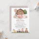 Invite friends and family in style and set the tone for your special day with this charming baby shower invitation. Design features farm animals (cow, horse, sheep, pig, rooster, chicken), brown barn and brown tractor on white background.
