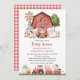 Invite friends and family in style and set the tone for your special day with this charming baby shower invitation. Design features farm animals (cow, horse, sheep, pig, rooster, chicken), red barn and red tractor on white background.