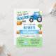 Boy ANY AGE farm birthday invite. Blue tractor.