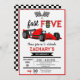Invitación Fast & Five Red Flame Race Car 5th Birthday Party