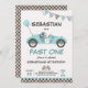 Invitación Fast One Birday Party Blue Race Car 1er cumpleaños