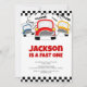 Invitación de primer cumpleaños de Fast One Modern Interactive Boy ¡Disfrute de la manera perfecta de iniciar la celebración de su primer cumpleaños! Esta invitación única presenta un diseño moderno con un divertido elemento interactivo que cautivará a sus huéspedes. La invitación se ha diseñado con un bonito juego en la parte trasera en el que todos los pequeños clientes pueden correr con sus coches de juguete. Los colores vibrantes y el diseño lúdico son perfectos para la celebración del cumpleaños de un niño pequeño, y la característica interactiva agrega una capa extra de emoción. A sus huéspedes les encantará esta invitación divertida y memorable que marca la pauta para un fiesta de primer cumpleaños.