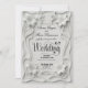 Set the tone for a sophisticated ceremony with this timeless design. Featuring a refined monochromatic palette and elegant scrollwork, it captures the essence of traditional luxury.This design features a sophisticated visual composition of monochromatic ivory and soft gray tones. The border displays a symmetrical arrangement of sculpted lilies and baroque scrollwork, rendered to create a realistic 3D paper sculpture illusion with light and shadow. The text is presented in a formal black calligraphy script paired with traditional serif typography, centered within the ornate frame. A small, delicate heart icon accents the layout. This is a flat printed image with a digital Faux Embossed effect. It does not contain actual raised paper, indentation, or 3D materials.