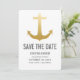 Invitación Faux Gold Foil Ancla Náutica Save The Date