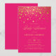 Invite a los invitados a su evento con esta invitación de baby shower personalizable. Cuenta con confeti de lámina de oro falso sobre un fondo rosa magenta. Personalice añadiendo sus datos. Esta invitación magenta es perfecta para cualquier tema o temporada de baby shower. Tenga en cuenta que no habrá lámina real en la invitación.
