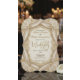 This design features a sophisticated interplay of cream and off-white tones, centered around a detailed ornamental border with scrolling flourishes. The background depicts a printed satin fabric effect with a draped curtain illustration in soft beige, accented by delicate floral clusters and tiny heart details. The typography utilizes a balanced mix of a fluid, handwritten script and a traditional, high-contrast serif font.This is a flat printed image with a faux gold foil and satin fabric effect; it does not contain actual raised foil or physical fabric layers.
