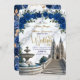 Set the tone for a majestic celebration. This design features a romantic cathedral scene with royal blue blooms and faux gold accents, perfect for fairytale unions.