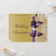Elegantes invitaciones de boda personalizadas en personalizado, doradas y violetas, con hermosos colores dorados purpurinoso, pinturas de imágenes impresas, joyas, adorables arcos y cintas impresas en color púrpura, y diamantes digitales de bonito joyas en un fondo de degradado de oro de moda con texto morado.POR FAVOR, TEN EN CUENTA QUE Estos son gráficos impresos planos, sin arcos, secuencias ni piezas en relieve. Estos elegantes, glamorosos, brillantes y glamour invitan a la decoración / impresión en ambos lados. El texto, la fuente y el color de la fuente se pueden personalizar según sus necesidades. Si necesita ayuda para personalizar su producto, póngase en contacto conmigo a través de mi tienda. Estaré encantado de ayudar.