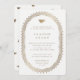 Una elegante ducha de novia blanca y falsa dorada que evoca la era Regency/Georgian. El oro falso es un efecto digital - esta NO es una invitación presionada al Relieve metalizado. Con un borde ornamental, un estilizado vaso de té y texto clásico, completamente editable. Se puede adaptar fácilmente a una invitación a una boda/pareja. El respaldo presenta un motivo de té y puede cambiarse por una foto si lo prefiere.