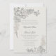 Un impresionante marco floral con peonías como piezas centrales, con flores de boda de relleno y follaje como eucalipto, flores de caldo, helechos, flores de verónica y más, dibujadas a mano con tinta y recubiertas con un efecto falso grabado en relieve, decora esta elegante y sofisticada plantilla formal de invitación a la boda que incluye caligrafía elegante con delicados florecimiento de los nombres, así como los nombres de los padres en la redacción, los padres de la novia organizando. El diseño en blanco y negro, con un champán muy delicado y acentos de inspiración dorada, en un fondo crudo, acompaña a la perfección a un ambiente formal y elegante y se integra con muchas combinaciones de colores. Esta invitación a una boda artística es una encantadora elección para parejas que aman el arte, los diseños artísticos, el arte original y único y los diseños bodas tradicionales y formales. Personalizar cada línea de texto. Elementos coincidentes disponibles.