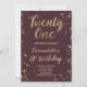 Confeti dorado falso salpicado 21 cumpleaños Una moderna invitación de fiesta de cumpleaños número 21 con una moderna, original y sencilla invitación al Relieve metalizado de oro falso con bandejas de confetti dorado y tipografía de pincel de estilo escrito a mano en un fondo rojo burdeos totalmente personalizable.... Si necesitas algún texto cambiado y personalizado, no dudes en contactarme!