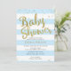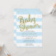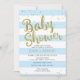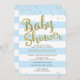 Invitación Faux Relieve metalizado dorado, Blue Stripes Baby