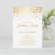 Invite a los invitados a su evento con esta invitación para la fiesta de cumpleaños del personalizable. En él se pueden ver varios puntos de confeti de Relieve metalizado dorado en un fondo blanco. Personalice agregando sus detalles. Esta rústica invitación de cumpleaños es perfecta para cualquier tema de cumpleaños o temporada.