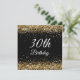 Una invitación glamorosa monogramada de 30 años para ella. Purpurina de oro fino contra negro. Se puede personalizar la caligrafía y el estilo del tipo de letra. Todos los elementos dorados brillantes y brillantes de este moderno diseño de gentileza son gráficos digitales.