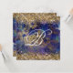 Una elegante invitación de 50 años monogramada. Purpurina de oro fino y brillante con chispas contra una imagen gráfica única de color azul índigo, morado, turquesa y Relieve metalizado dorado. Se puede personalizar el lujoso monograma de caligrafía en blanco y negro del centro. Todos los brillantes purpurinas dorados, Relieve metalizado y efectos de mármol en este moderno diseño de niñita se crean con gráficos digitales. Un diseño creativo para tu celebración de invierno, feriado o cumpleaños en diciembre. Trasladar el monograma delante a un regalo a su par.