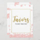 Este moderno cartel floral de "Favores" para la ducha de matrimonio presenta un fondo floral rosa con toques purpurinas dorados. El texto está escrito en una mezcla de letra de caligrafía lúdica y una fuente sans moderna.