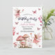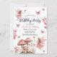 Un bonito diseño con una mágica tierra de hadas, setas, flores y mariposas y una caligrafía elegante. Puede personalizar esta invitación con sus propios detalles.
