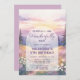 Boho and rustic Christian girl's birthday design based on psalm 139 "Fearfully and Wonderfully Made" with a watercolor-style landscape with mountains, fir trees, wildflower meadow, and a rising sun in soft pastel colors of pink and purple.