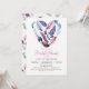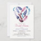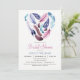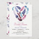 Púrpura, rosa, violeta plumas invitan a la ducha de novia. Invitar funciones de plumas en forma de corazón en el frente, con patrón personalizado en la parte posterior.