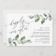 Hermoso Diseño Moderno Romántico, en tema de acuarela de hojas de eucalipto, Anuncio de Boda de Elopamiento, tarjeta de invitación (Felicemente para siempre). Esto es perfecto para la recepción de su boda y la fiesta de celebración después de la boda. Agregue los detalles de su celebración de brunch / cena de elopamiento.