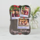 Añade tu foto y texto a esta carta de Navidades rústica personalizada. Espacio para tres de tus fotos como una antigua foto Polaroid cada una con etiquetas personalizadas. Carga fácilmente tu foto y ajusta según sea necesario usando el botón Personalizar para redimensionar y mover para crear una tarjeta de Navidades familiares memorable.