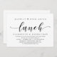 Tarjeta de invitación de boda con tema de guion moderno (Almuerzo Felices para Siempre). Es perfecta para su celebración de boda informal a orillas del lago.