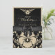 Tarjeta de invitación y anuncio de foto tradicional personalizada con patrón floral negro y beige script Navidad y un feliz año nuevo. Consulte el resto de esta elegante colección de decoración para el hogar y vacaciones de Navidad.