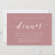 Marque el comienzo de su para siempre con elegancia utilizando nuestra invitación de celebración de fuga de boda con tema contemporáneo de rosa dusty rose, "Cena Felices para Siempre". Perfecta para parejas que extienden su alegre ocasión, esta invitación emana sofisticación con un toque de diversión, preparando el escenario para un evento memorable. Adornada con un tema de diseño de letra moderna y atemporal, añade un toque de encanto refinado a sus festividades. Creada por TeeshaDerrick, esta invitación promete capturar bellamente su historia de amor.