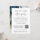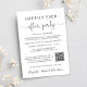 Huida elegante o anuncio de boda privada e invitación a la recepción de boda o fiesta de celebración. En la parte frontal, "Happily Ever After Party" está escrito en una mezcla de tipografía simple y una elegante letra con florituras, y puedes personalizar tu mensaje e invitación con más detalle, crear un código QR vinculado a tu sitio web de boda para que tus invitados lo escaneen para obtener más información y responder en línea, y agregar tus nombres en una letra tipo firma. El reverso presenta tu foto de boda favorita, tus nombres y las fechas de la boda y la recepción.
