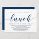 Clase de guión moderno tema azul marino elegante, tarjeta de invitación de huida de boda (Felicidad Eterna Después del Almuerzo). Es perfecto para la celebración informal junto al lago de su huida de boda.