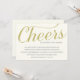 Esta invitación chic y elegante es perfecta para una fiesta elegante que celebra los 25 años de aniversario de boda de una afortunada pareja. La invitación presenta el sentimiento "Brindis por veinticinco años" en una hermosa letra dorada, sobre un fondo color crema blanco.